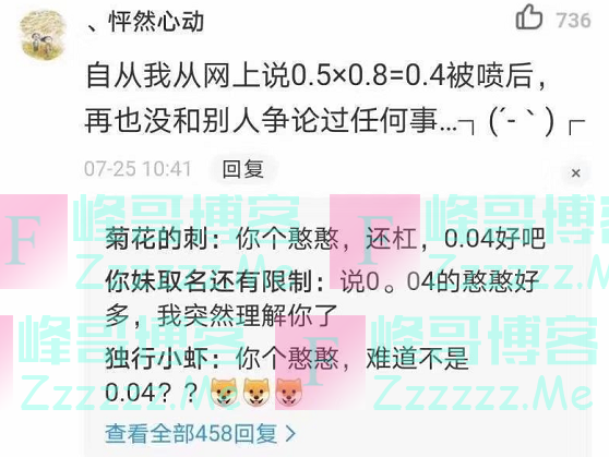 小编的数学是不好,但是也不会连最起码的乘法都不会了啊,本来小编深信0.5*0.8应该是0.4的,又被评论区给动摇了,题主和评论区的网友到底谁是憨憨呢?欢迎在评论区讨论,哈哈哈哈,这也太丢人了,一群已经步入而立之年的成年人在这里讨论一个数学题,数学老师要是知道了,不知道是会开心还是会难过