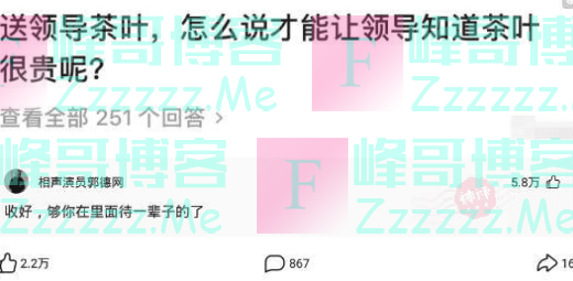 在这个社会上生存,很多事情都是很无奈的,比如说找人办事必须要送礼这件事,已经成了约定俗成的事情了,但是礼物虽然送到了,怎么才能让接受礼物的人知道这礼物很贵重呢?神评说的太好了,一瞬间小编就知道你这茶叶到底有多贵了,哈哈哈