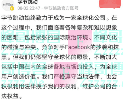 今天,抖音又在各大中文社交平台上发布了一番豪言壮语,说什么自己是国际化企业,自己是被Facebook抹黑和污蔑云云。于是我又去抖音的推特上看了一下,是的,他们没发。