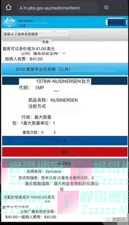 很快就有消息传来,就是这种治疗脊髓性肌肉萎缩症(SMA),在澳洲,诺西那生钠仅41美元,合人民币不过280元左右!
