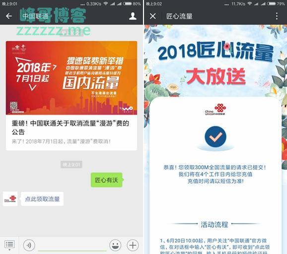 微信联通公众号免费领200~300M全国流量》发布于2018-6-22