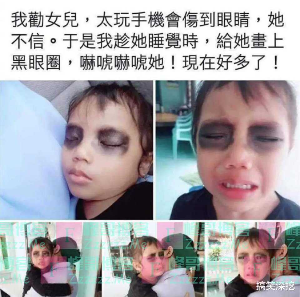 在当今这个社会生活中,电子设备的发展让现在越来越多的人的生活变得不一样了,现在很多人都有手机,我们大人玩手机倒是没什么,但是啊现在的很多小孩子是管不住啊,偷偷的拿着手机玩,我们都知道手机有很大的辐射,而且长时间玩手机对眼睛不好,小孩子根本不知道,于是有网友就想到了这样的办法,给自己的女儿说了玩手机对眼睛不好,但她不相信,所以就趁她睡觉时偷偷的画上了黑眼圈,哈哈哈,直接就被急哭了,这下再也不敢玩手机了吧!