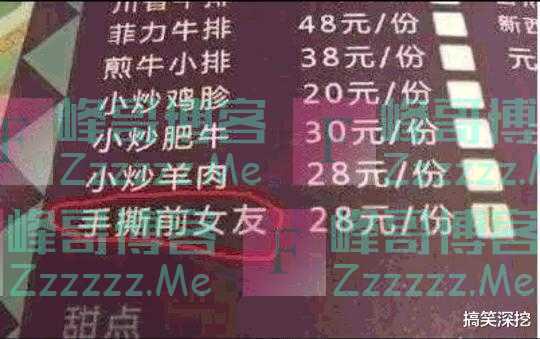 今天去饭店吃饭的时候,看见了一道这样的菜,这也太厉害了吧!“手撕前女友”了解一下,这家店的老板肯定是男的,而且还是被前女友伤害过的,不然也不会想到这样的菜名啊,真想见识一下这是一道什么样的菜,28元一份,来一份吃一下,真的是太搞笑了,不知道有没有手撕前男友这道菜啊。