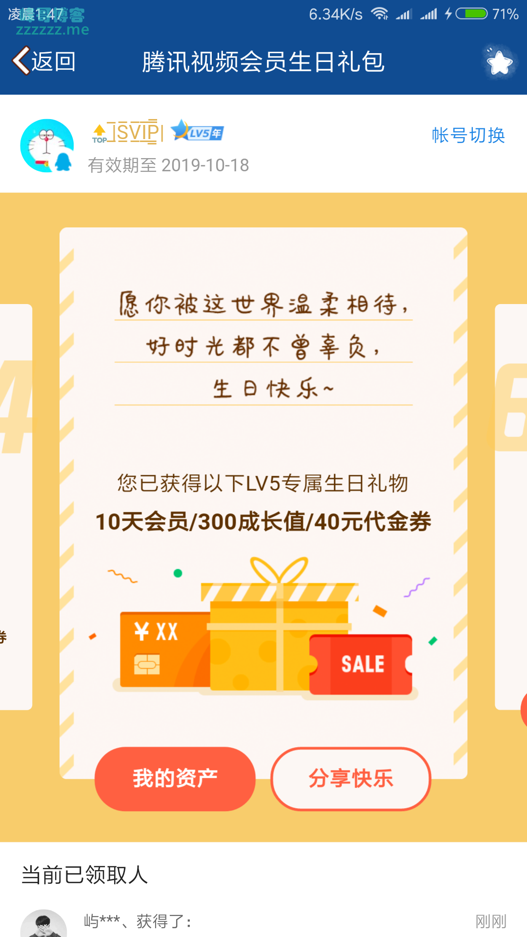 生日改成今天即可,需要有视频会员的才可以领取,亲测领取到10天会员300点成长值!