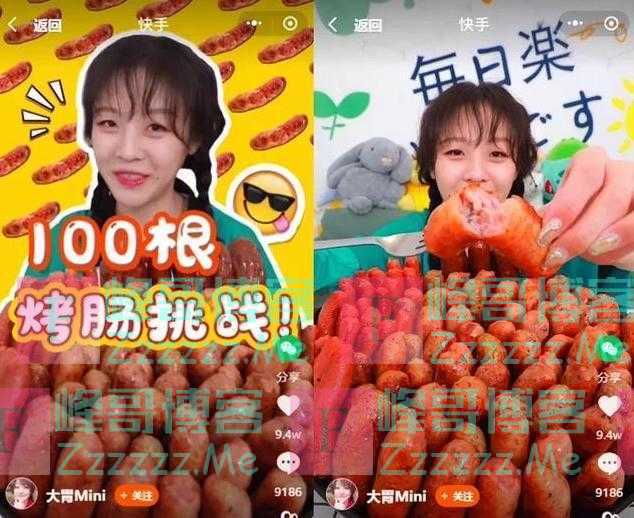 上月底,Mini发布挑战吃100根烤肠的视频。