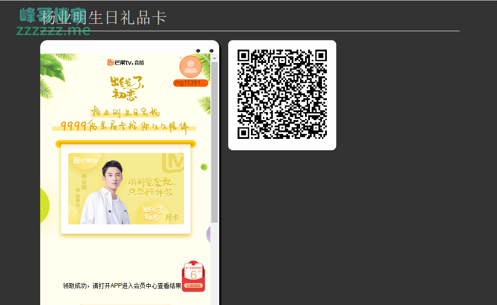 芒果TV杨业明生日礼品卡免费领取一个月VIP会员》发布于2018-7-22