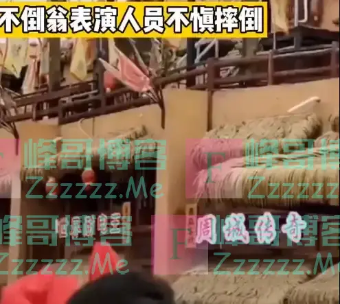 就在近日,也是在西安某景区,同样是不倒翁表演就出事了,原来在来回的摇摆过程中,支撑女演员的杆子突然在中途折断