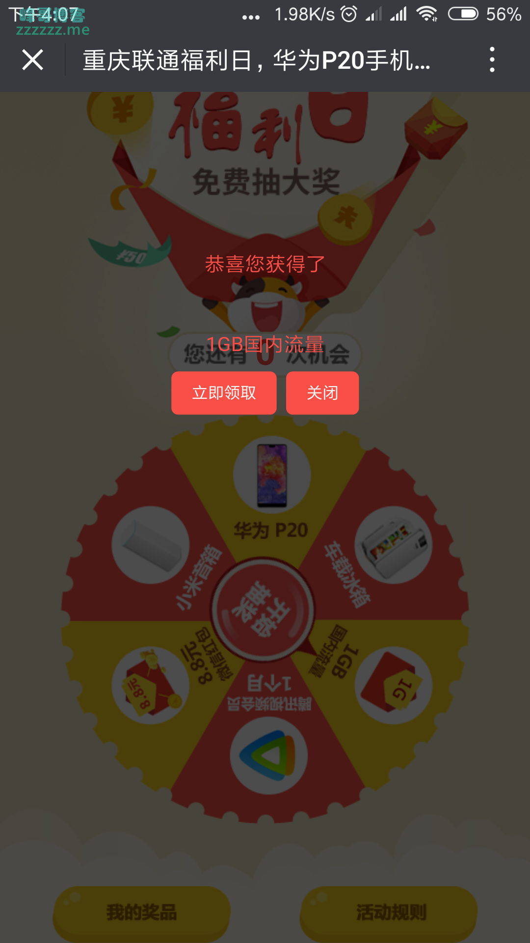 重庆联通抽奖不限地区百分百中亲测1G流量》发布于2018-7-28
