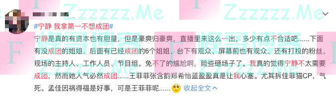 有网友表示宁静这句话太低情商了,这不是对其他成团队员不满意的意思吗,你咖大就都得供着你?