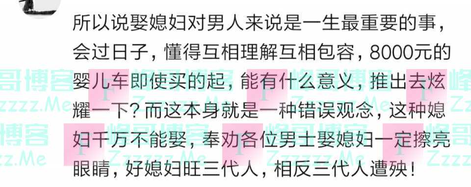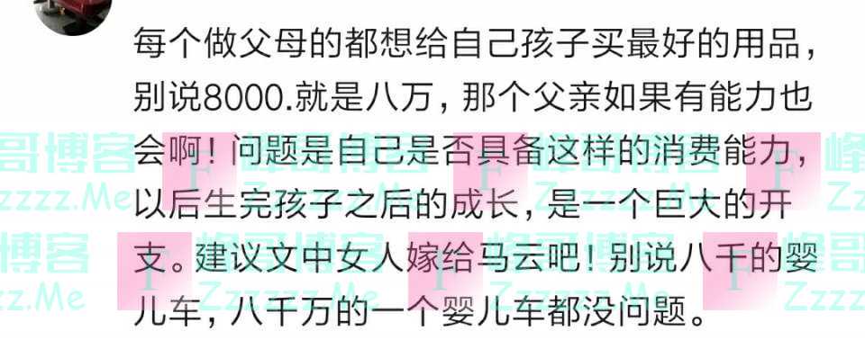 身为宝妈,就算我有钱也不会买这么贵的婴儿车,又不是要孩子坐一辈子,如果条件允许你也可以买,但是如果条件不允许还要买那就叫虚伪了,人的价值观不一样,那么在一起过日子真的累,离了好。物品不要在乎价格,而是在乎给自己带来的便利,不是便宜的就推不走了,不是便宜的坐了孩子就长不大,这么贵的婴儿车也就坐那么几个月,完全没必要,,但是如果实在太有钱花不完,也可以买的。