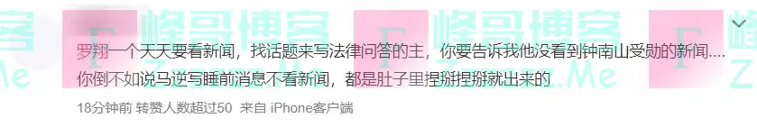 有人直接称他为 “ 公知 ” ;有人开始翻找他过去的一些让人不能接受的言论;有人不相信罗翔会没看到表彰大会的新闻。