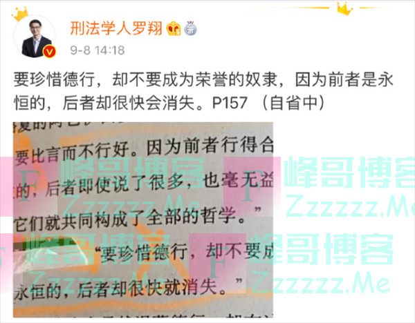 9月8日,罗翔老师在微博分享了一句读书笔记: