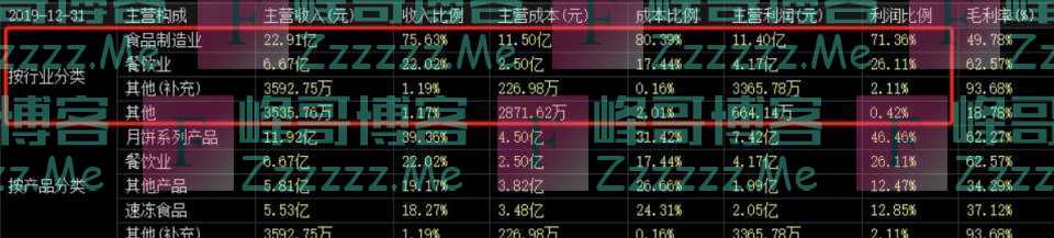 根据公司的2019年年报主营业务分析数据显示,广州酒家的食品制造业收入达到22.91亿,收入占比达到了75.63%,食品制造业利润达到11.4亿,利润占比达到了71.36%。反观传统的餐饮业务方面,餐营业收入仅为6.67亿,收入占比仅有22.02%,餐饮业利润仅有4.17亿,润占比仅有26.11%。毫无疑问,广州酒家其实是一家身披餐饮企业外衣的食品制造企业。
