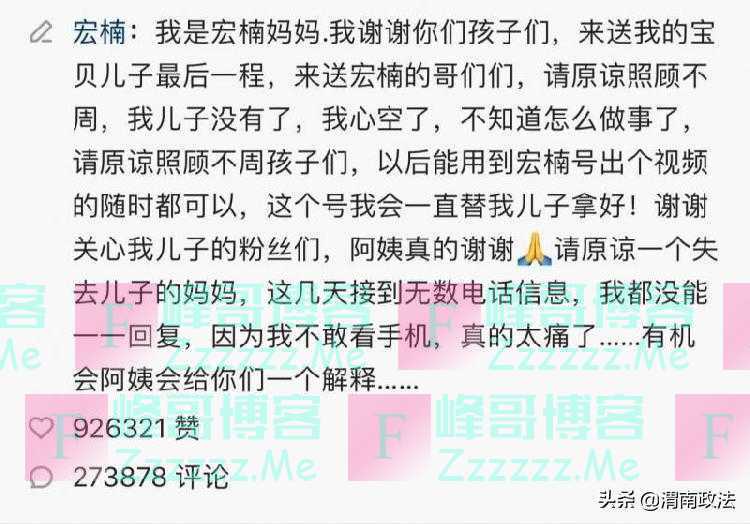 对于段宏楠母亲目前决定自己管理公司和账号一事,段宏楠的二舅解释说,她是希望完成儿子的遗愿,“段宏楠生前希望他的账号粉丝能够达到1000万,她妈妈希望继续帮助段宏楠的弟子,也希望能够通过管理实现段宏楠的这个愿望。”