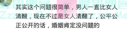 网友:要结婚的男女,女方问男方房子加我名吗?男方没正面回答,问了一个问题说你家买房子会加我名吗?女方就回答了一大篇:房子不加我名可以,但婚后我不会帮你还房贷,也不接受借钱给你因为不好意思喊你还,房子也可以自己挣钱买;婚后生活费各自付各自;婚后生孩子后也不接受全职在家带孩子;你的父母你自己养,因为我也有父母要养;不能因为各种原因影响我的事业…