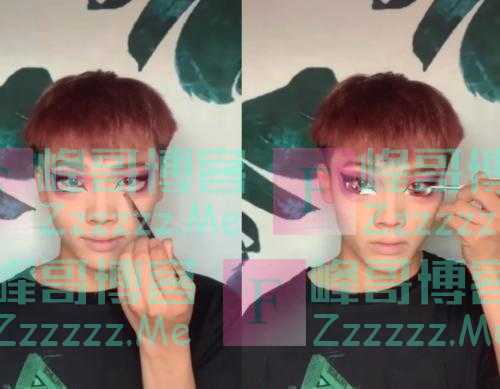 接下来他给自己画上一个非常漂亮的眉毛,而且正在给自己画眼影,用的是玫红色的眼影,而且眼尾是比较上挑的。