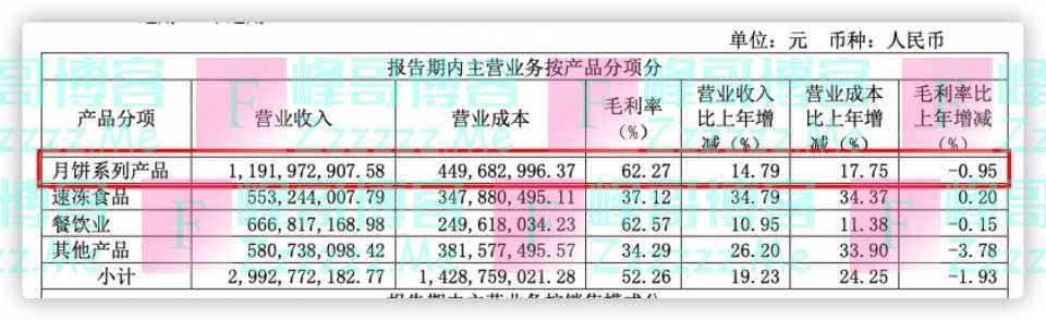 我们来看三家公司的年报,来看看月饼的毛利是多少?