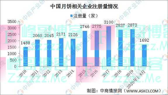2010年月饼相关企业注册量不足1500家,2017年突破3000家,2019年新注册量为2873家,与2018年几乎持平。受疫情影响,今年前8个月,月饼相关企业的注册量是1692家,同比下降了19.1%。这说明一个问题,月饼的利润我们看到的披露的利润可能并不是利润的天花板,可能还存在更高的利润率。