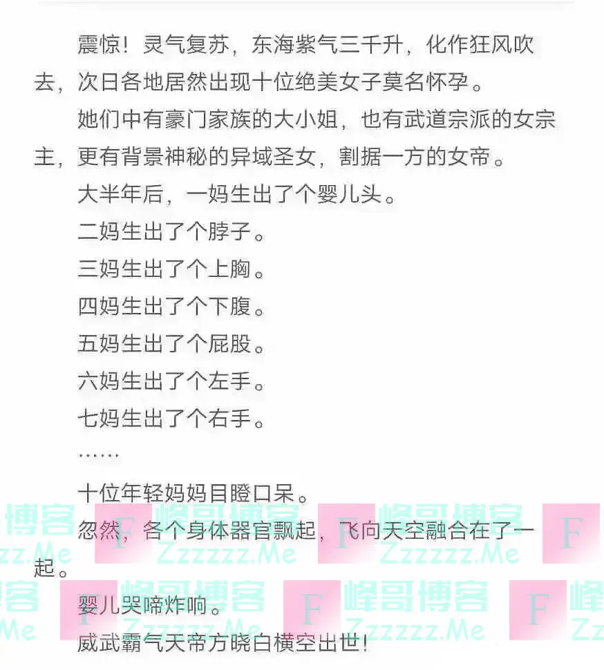 10、当我看到下面这小说时,我承认十妈生一胎在它面前是真的太平淡无奇了。是我少见多怪了。我就想弱弱的说一句,作者能出来解释一下这是如何做到的吗?