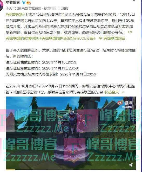 英雄联盟更新19个小时惹众怒!玩家:这补偿打发叫花子?》发布于2020-10-16