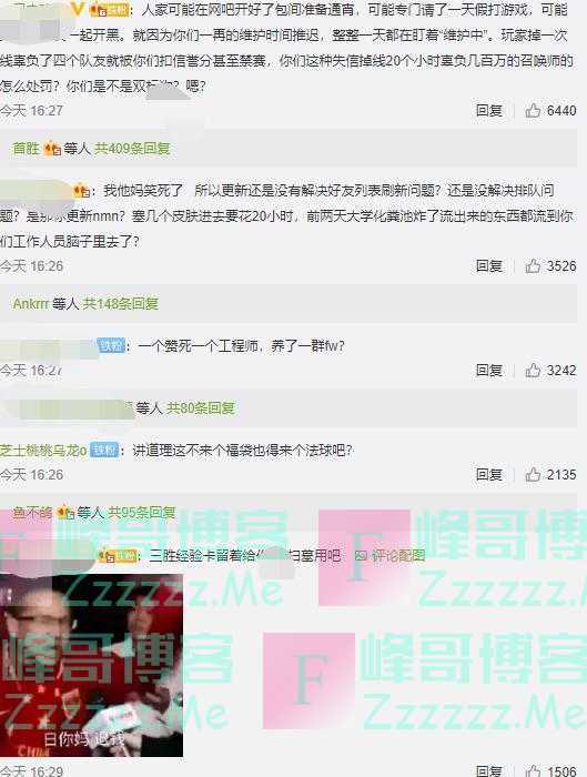 补偿奖励一发布,联盟官方算是捅了马蜂窝了!瞬间微博下面四五千条评论清一色的是怒骂!维护19个小时就给个经验卡给个表情箱子?好歹一家大公司,好歹几百万的玩家翘首以盼,怎么说不得整个法球给大家开一开?法球里面东西垃圾点也行啊,至少网友们会理解成运气不好这样的概率问题,但是给俩没用的垃圾还得让人自己领是什么意思?