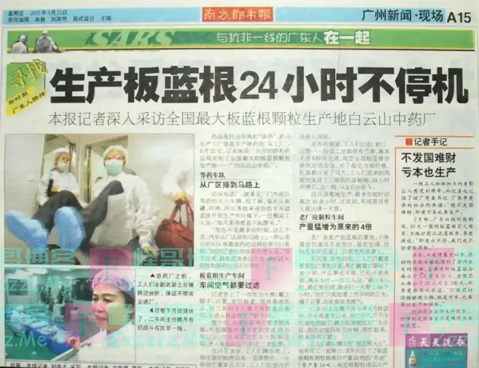 那一年,媒体用大标题报道说:“生产板蓝根24小时不停机。”同时,还专门配发了一篇记者手记说:“不发国难财,亏本也生产。”