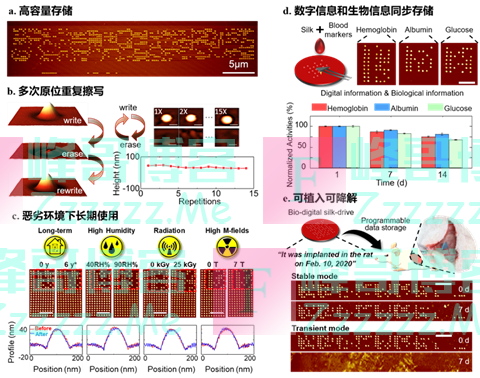 这个数据非常可观,如果能批量生产,将极大地降低成本。因为丝素蛋白是一种强度高、生物相容性极好的天然蛋白质,所以蚕丝硬盘有着极强的稳定性。