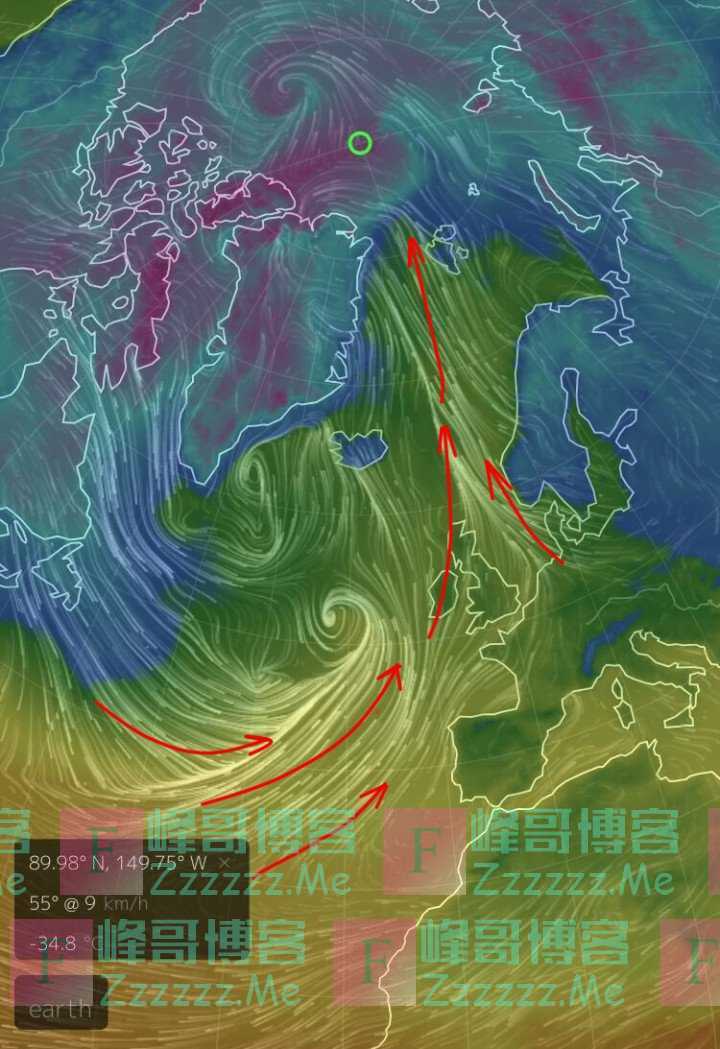 冷空气如此活跃和西风带频繁波动有关,西风带就像一条大气长河,在地球中纬度地区不停的流动,如果它一直平直,那大多时候相安无事,但如果西风带经常波动,那就经常会诱发寒潮等激烈天气——除了我国的准寒潮外,北半球不安分的西风带又要在北大西洋搞事情了,超级计算机的预测认为,一个庞大的温带气旋将在英国以西的北大西洋上生成。