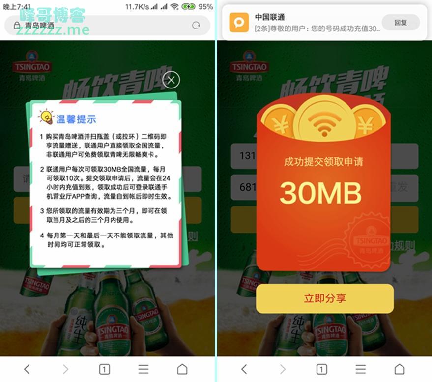 青岛啤酒每个月领300M联通流量 流量有效期3个月!》发布于2018-9-2