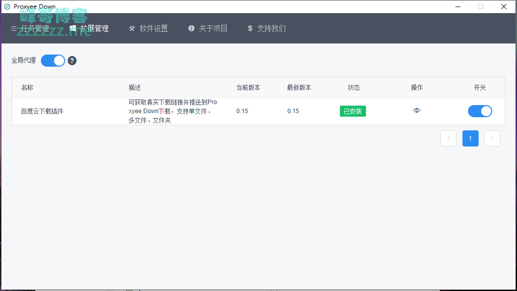 下载解压出来之后打开Proxyee Down.exe然后到扩展管理安装百度云下载插件启用打开全局代理