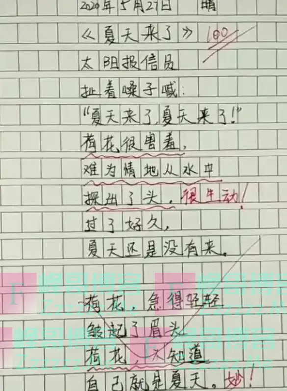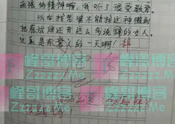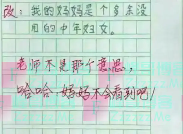 老师在看到这篇作文后的反应也是很搞笑,很是期待他的妈妈看到这篇作文后是什么反应,就差没直接让妈妈签字了。