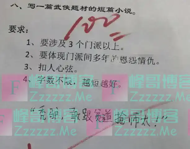 作文这种主观性很强的东西,根本没有参考答案,所以让孩子放手去写,经常会出现一些“震惊四座”的作品。大多数都非常的搞笑,但因为不符合要求只能得0分,不得不让人感叹:学渣都是段子手。