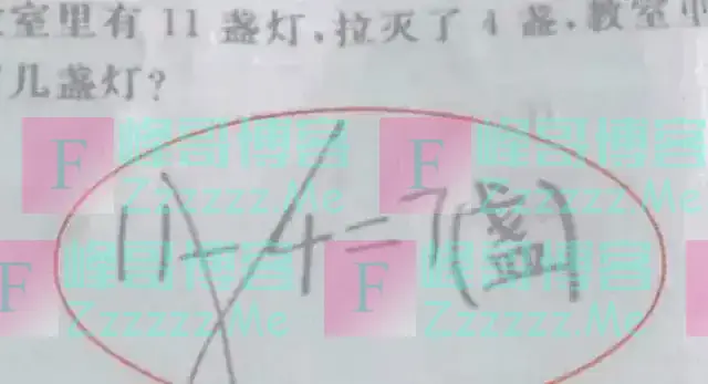老师回复:“这道题属于思维逻辑的问题,全年级组基本上都没有做对,你仔细看看,题目问你的是最后还有几盏灯,虽然11-4=7的公式是正确的,但是答案却不对,就算关掉了4盏灯,最后还是剩下11盏灯啊!”