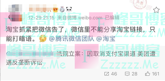 网友评论:马上李某可以起诉阿里巴巴的天猫淘宝不支持微信支付