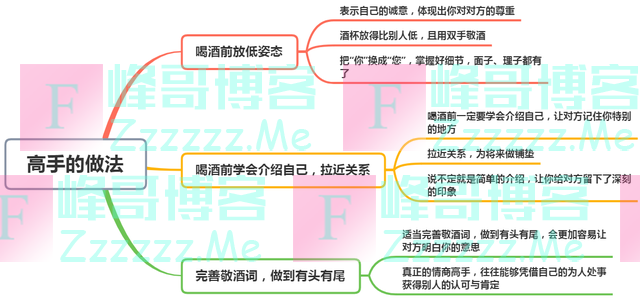 低层次的人往往认为,只要敬了别人一杯酒,别人就会记住你,这种想法很不成熟。饭局何其多,敬酒的人又有多少,凭什么偏偏能够记住你?所以,高手的做法显得尤为重要,说不定就是简单的介绍,让你给对方留下了深刻的印象。