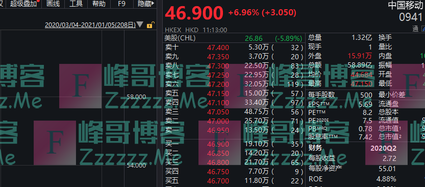 昨日南下资金大幅加仓中国移动
