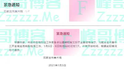 石家庄紧急通知:停止、关闭!沧州、唐山、邯郸等6市最新通告+提示来了》发布于2021-1-7