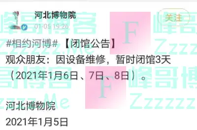 ? 石家庄市博物馆:1月6日、7日、8日闭馆三天