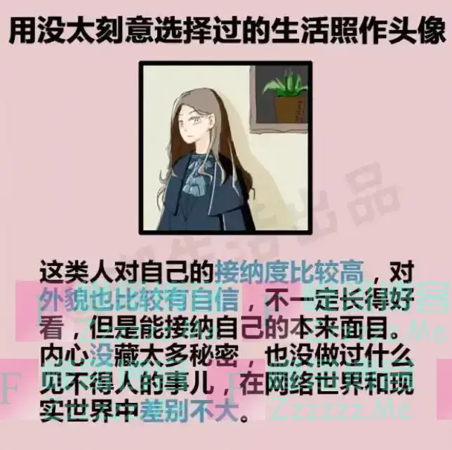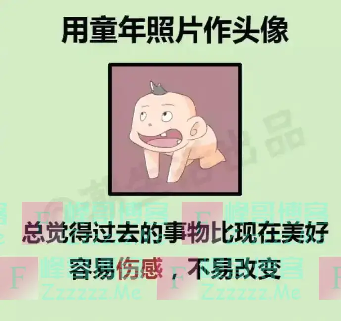 2 / 9 头像是对自我、情绪或所认同事物的一种投射。1.又远又小的人像:注重隐私,害羞保守。2.童年照片:怀念往昔,容易伤感。3.没刻意挑过的生活照:对自己的接纳度比较高。4.男女朋友的照片:陷入热恋不能自拔。5.儿女的照片:初为人母人父是难掩心中喜悦,如果孩子很大了头像还没变,则是把孩子当成人生唯一的成就与指望。6.家人的照片:缺乏安全感,渴求庇护。你现在用的头像是什么?
