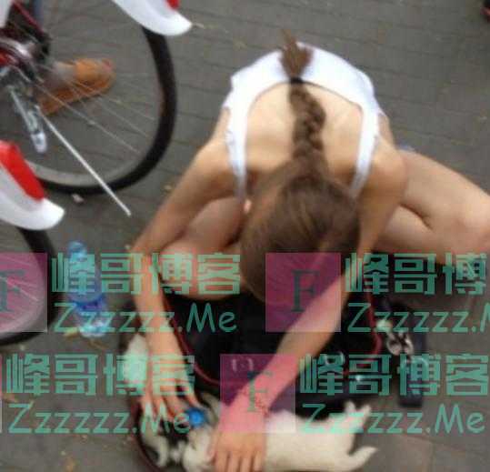 这位街头的外国女孩看见有人卖掉自家的狗狗之后,就一直跟两只小狗玩闹,迟迟不舍离去。