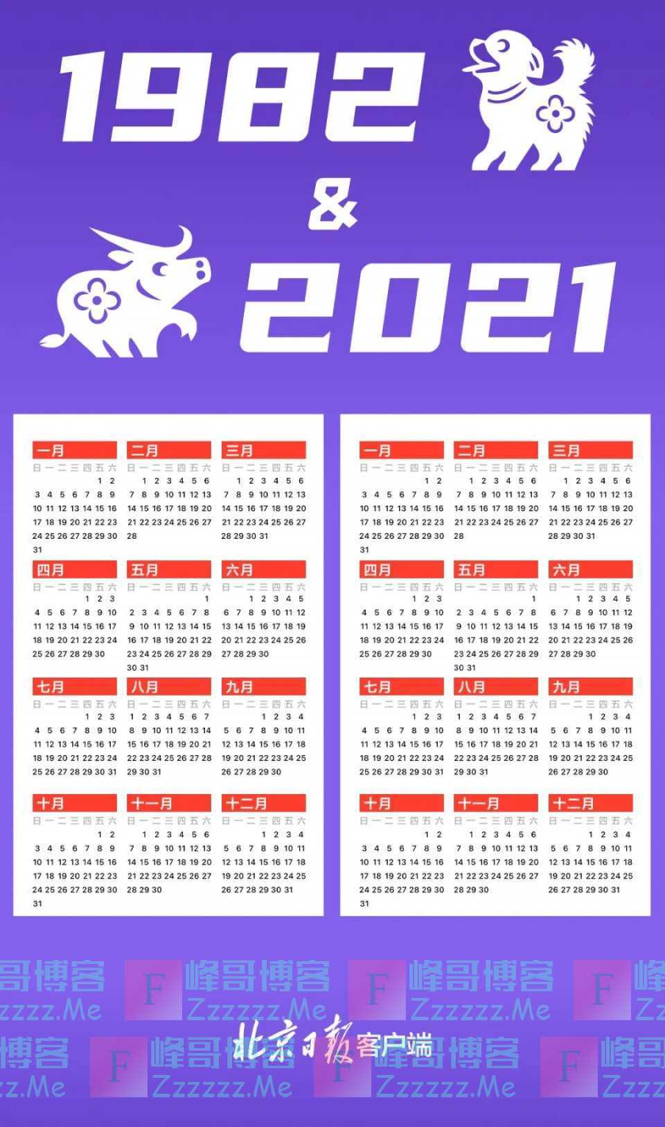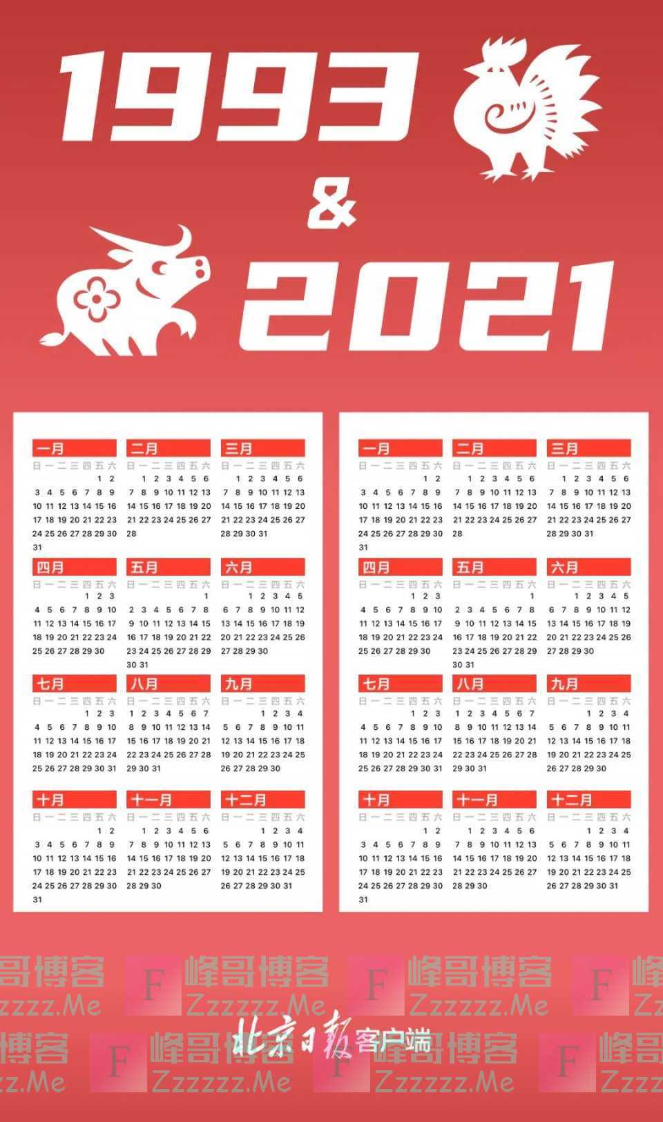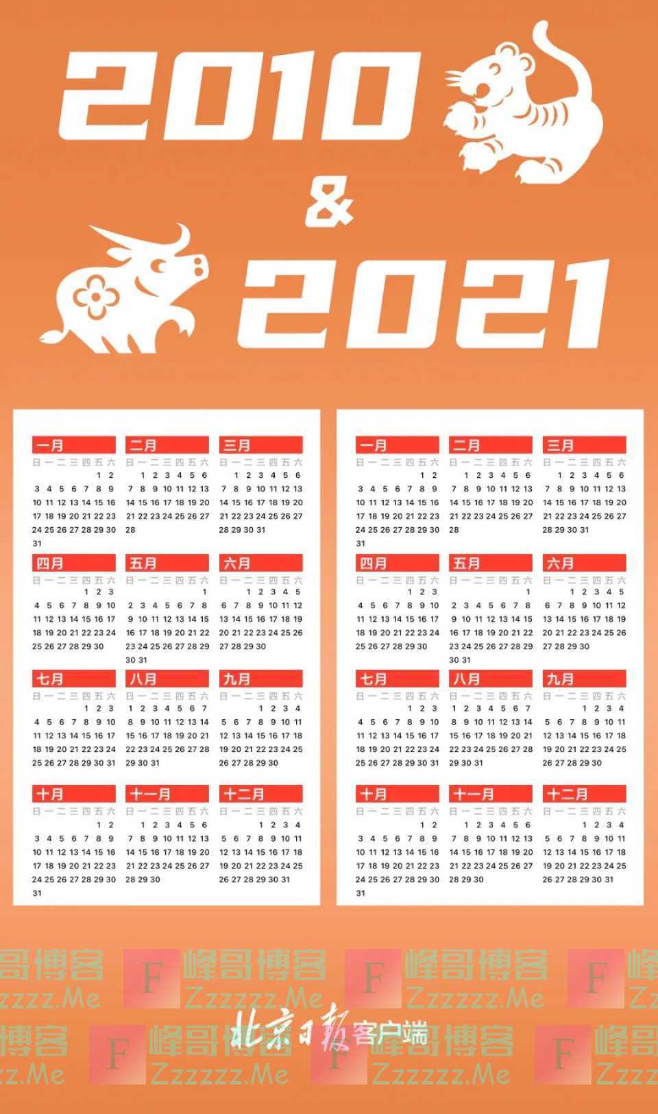 记者通过万年历查询后发现,这种巧合并不是相隔50年才会遇到。事实上,除了1971年,1982年、1993年、1999年以及2010年的日历都和2021年一模一样。