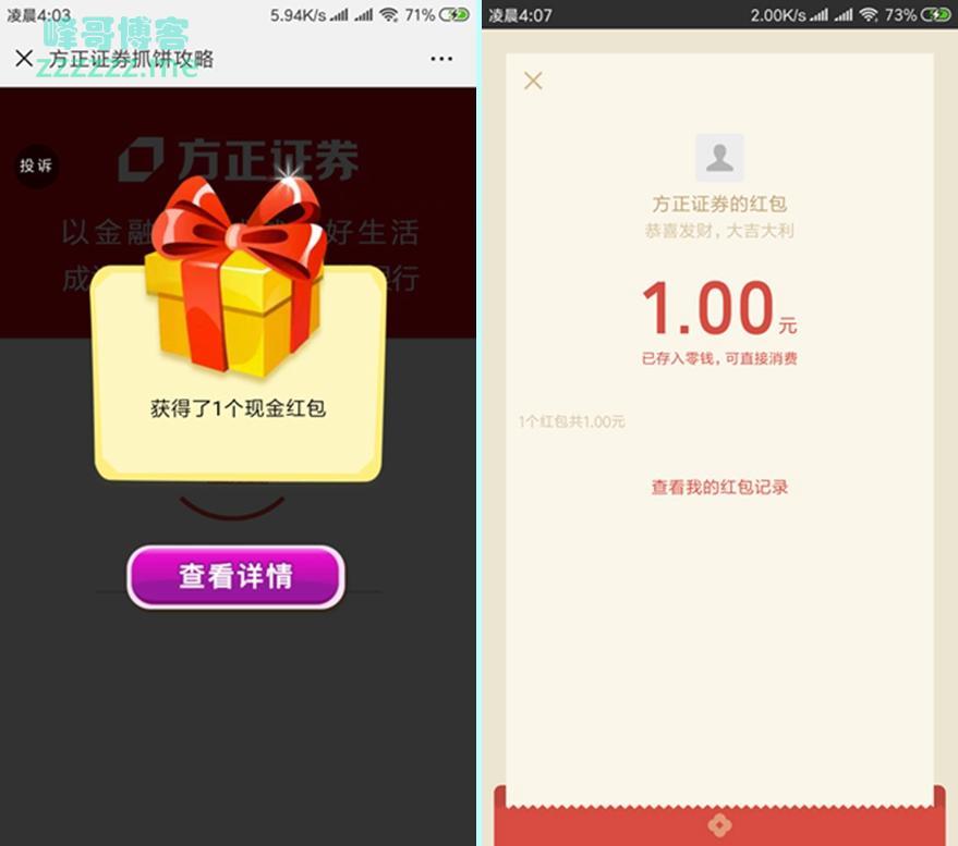 一共可以抽三次,基本上一次就中,红包秒到的!