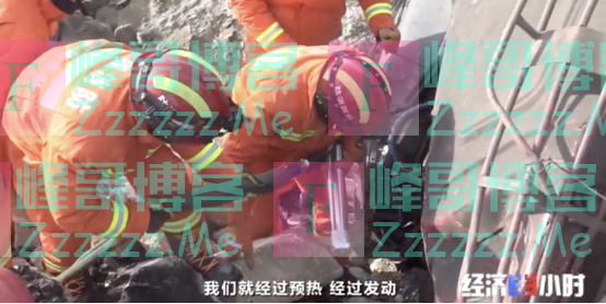 由于车头与地点之间的空隙十分狭小,液压顶杆没有支点,救援一度陷入困境。随后,消防救援人员迅速调整思路,就地取材,用石头来做支点。此时室外气温已经接近零下30℃,极寒下启动设备是给消防员带来的另一个考验。