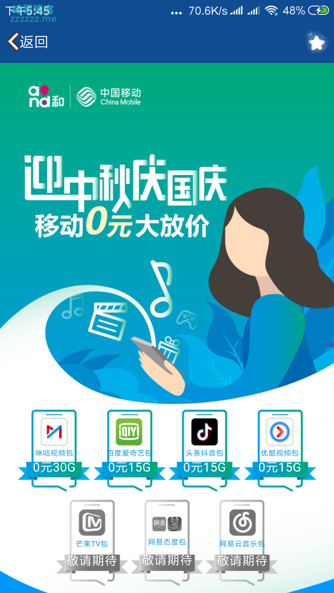领取入口汇总 领取咪咕视频30G和爱奇艺15G 优酷15G 抖音15G流量
