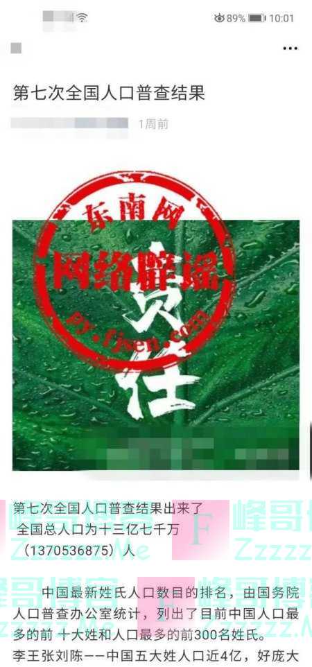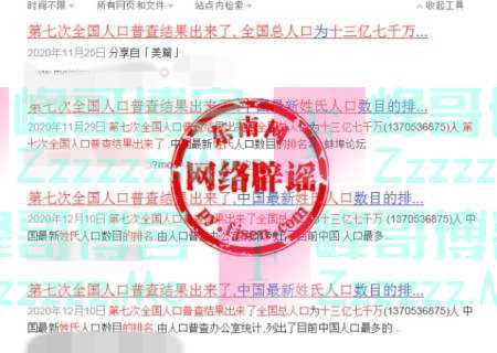 全国第七次人口普查结果出炉?全国总人口十三亿七千万?纯属谣言!》发布于2021-1-22