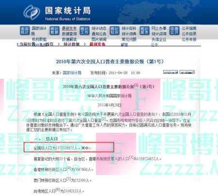 2010年第六次全国人口普查主要数据公报(第1号)截图
