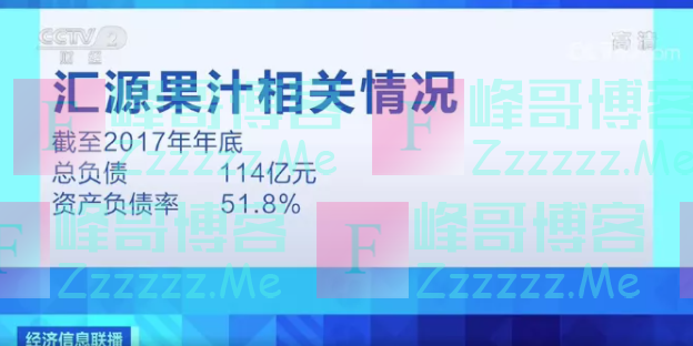 值得注意的是,从2011年到2016年,汇源果汁每年的扣非净利润都为负数,同时,汇源果汁负债率也不断攀升,截至2017年底,总负债已经达到114亿元,资产负债率高达51.8%。