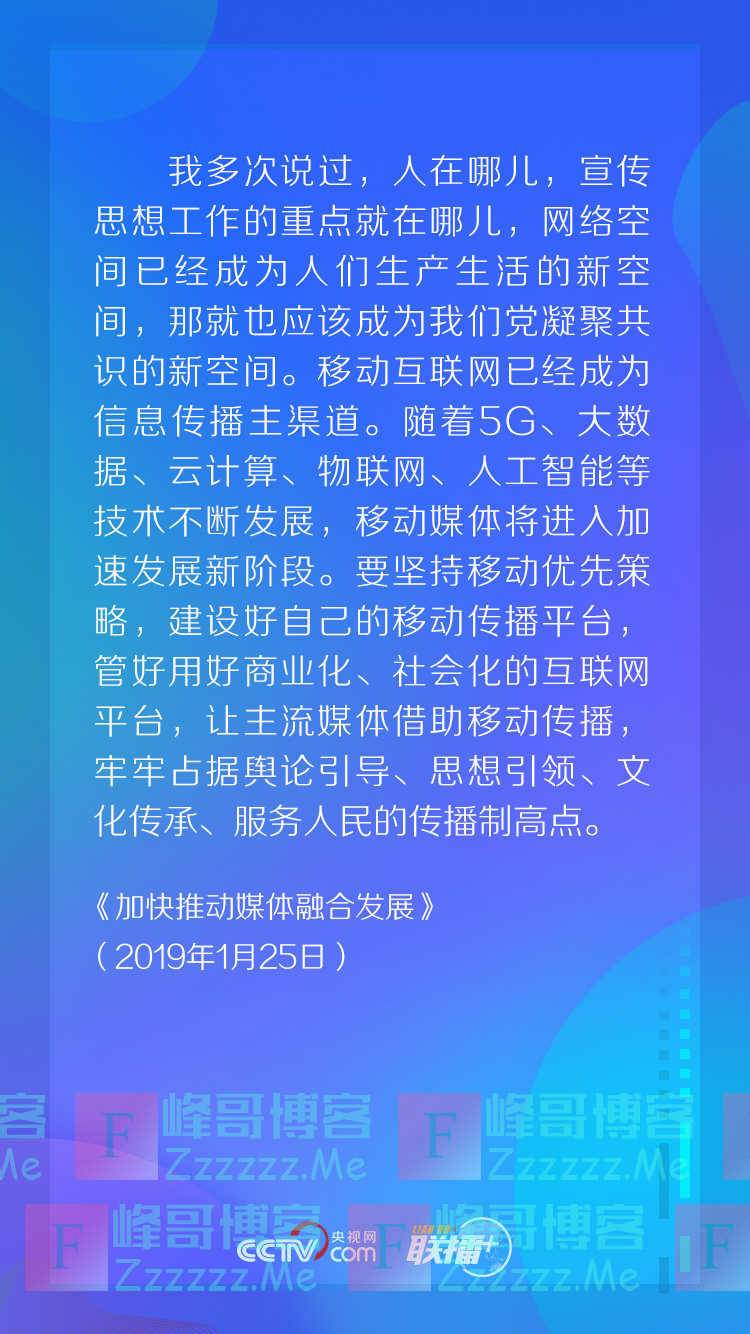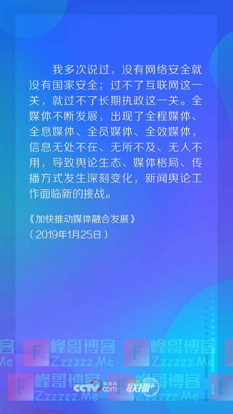 “我多次说过,人在哪儿,宣传思想工作的重点就在哪儿,网络空间已经成为人们生产生活的新空间,那就也应该成为我们党凝聚共识的新空间。”