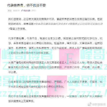 广电时评直接发文表示:我们不会为丑闻劣迹者提供发声露脸的机会和平台,一如既往,坚决为广大人民群众提供健康向上荧屏声频。