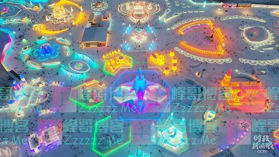 △哈尔滨冰雪大世界打造了中东欧17国主题城堡园区,夜景璀璨,如梦似幻。